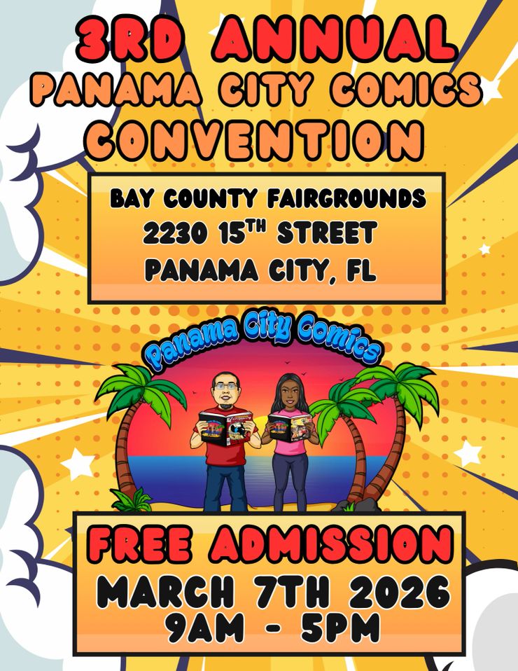 Panama City Comics Convention is happening Saturday, March 7, 2026 from 9:00 AM to 5:00 PM at the Bay County Fairgrounds, 2230 15th Street, Panama City, Florida. This is the 3rd Annual convention, and they’re going bigger than before with over 20,000 square feet of vendors, artists, and exhibitors. The event brings together comics, toys, gaming, art, and pop culture in one spot.